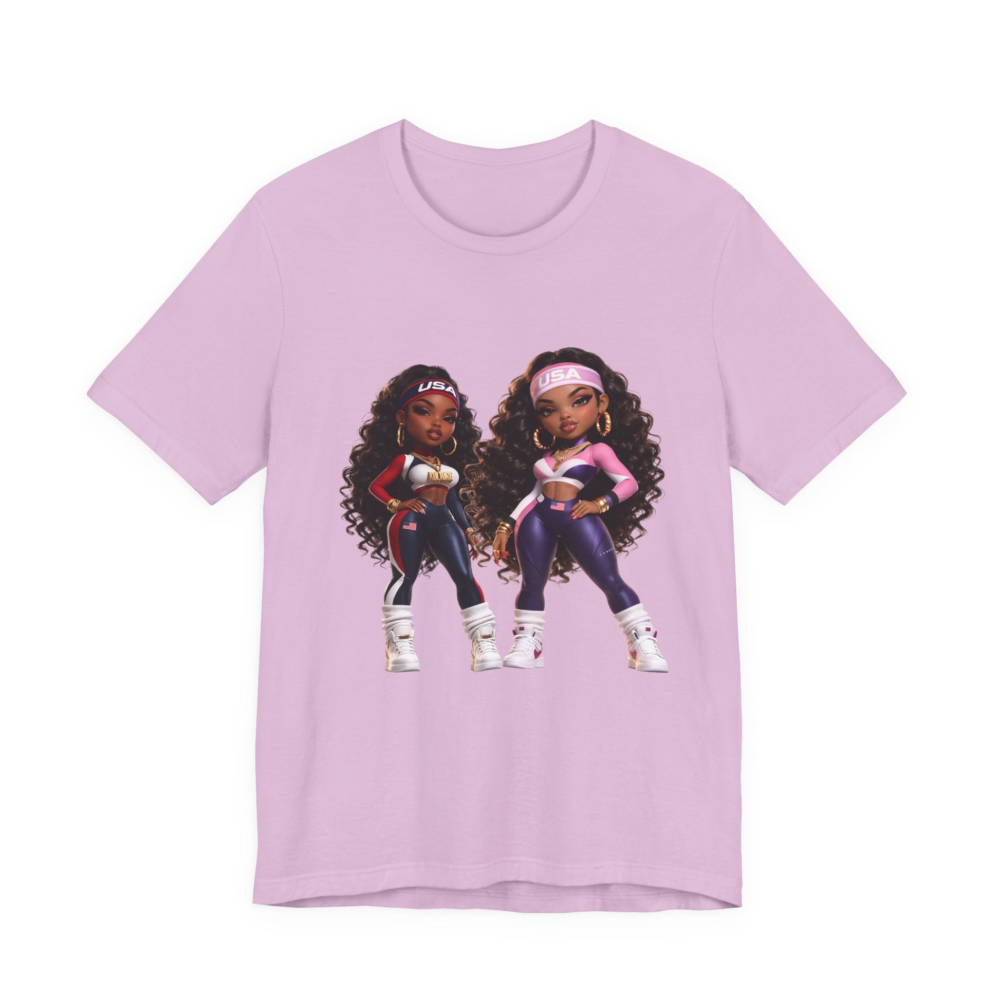 TAmerican pride meets the color of royalty. This premium tee from our Kulture Fresh™ line is the official "Plum Planet Edition," featuring our exclusive USA Baddie Chibi duo. Repping the red, white, and blue with a signature "KULTURE" gold nameplate, these characters are a literal statement of style and national pride.